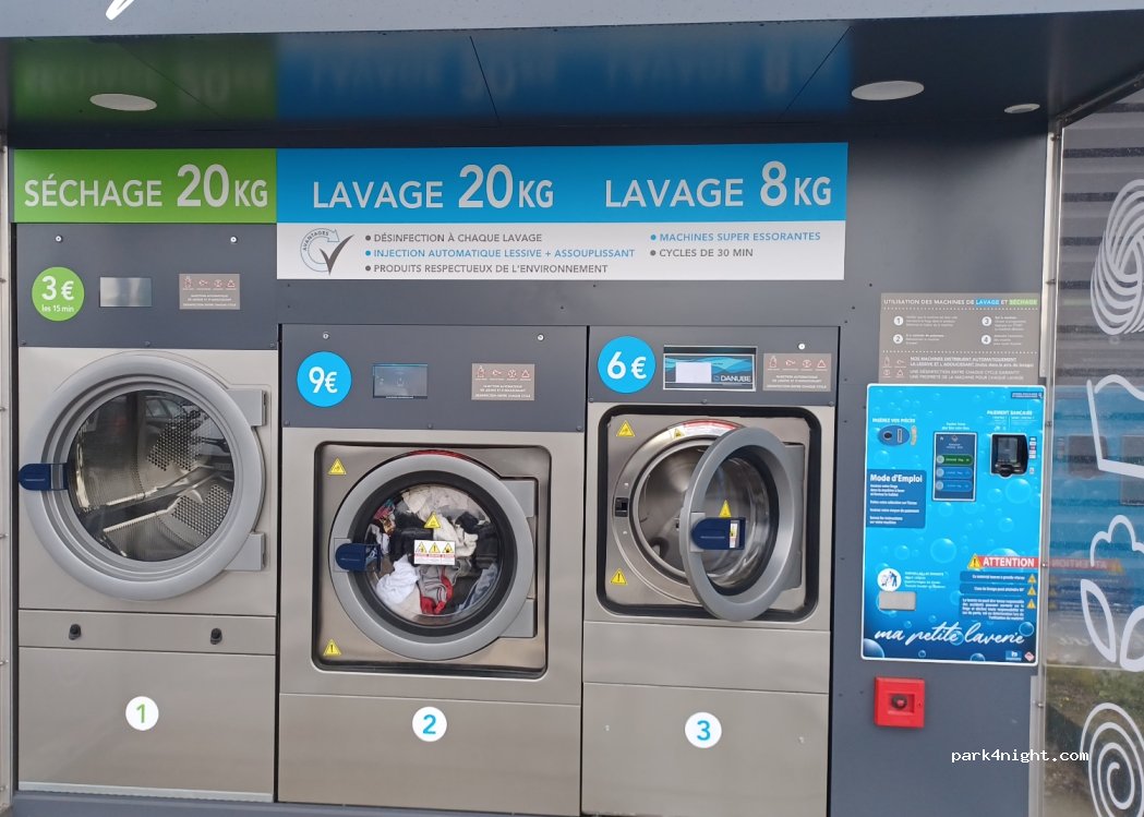 Laverie à 10 min à pied de l'aire de camping-car avec machine à laver récente et propre.