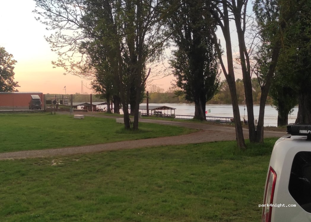 Parking mixte, au bord du Pô. Éclairé. Vidéosurveillance h24. Partiellement ombragé. À côté de la piste cyclable Vento. Toilettes à jetons et douches chaudes (pendant les heures d'ouverture de la structure). Zone de collecte séparée des déchets. À proximité d'un parc public, d'une aire de jeux pour enfants et d'une aire de promenade pour chiens. Possibilité d'excursions en bateau et de location de vélos.