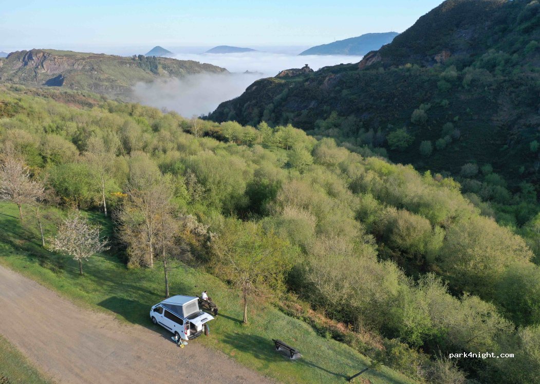 Great spot out in nature. Occasional car and dirt bikes but otherwise just in the hills surrounded by horses. Enough room for a few people to park on level ground. Nice hikes nearby, bins available and good mobile signal. Probably my favourite spot near Bilbao. Easier access coming from the west via BI-2757