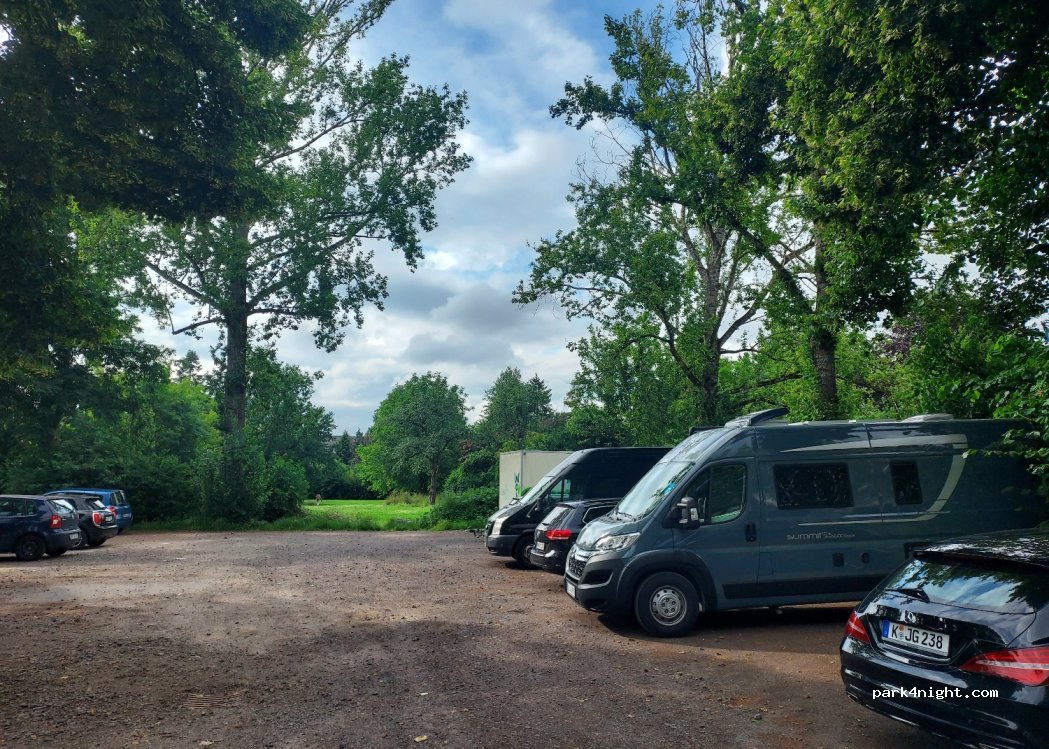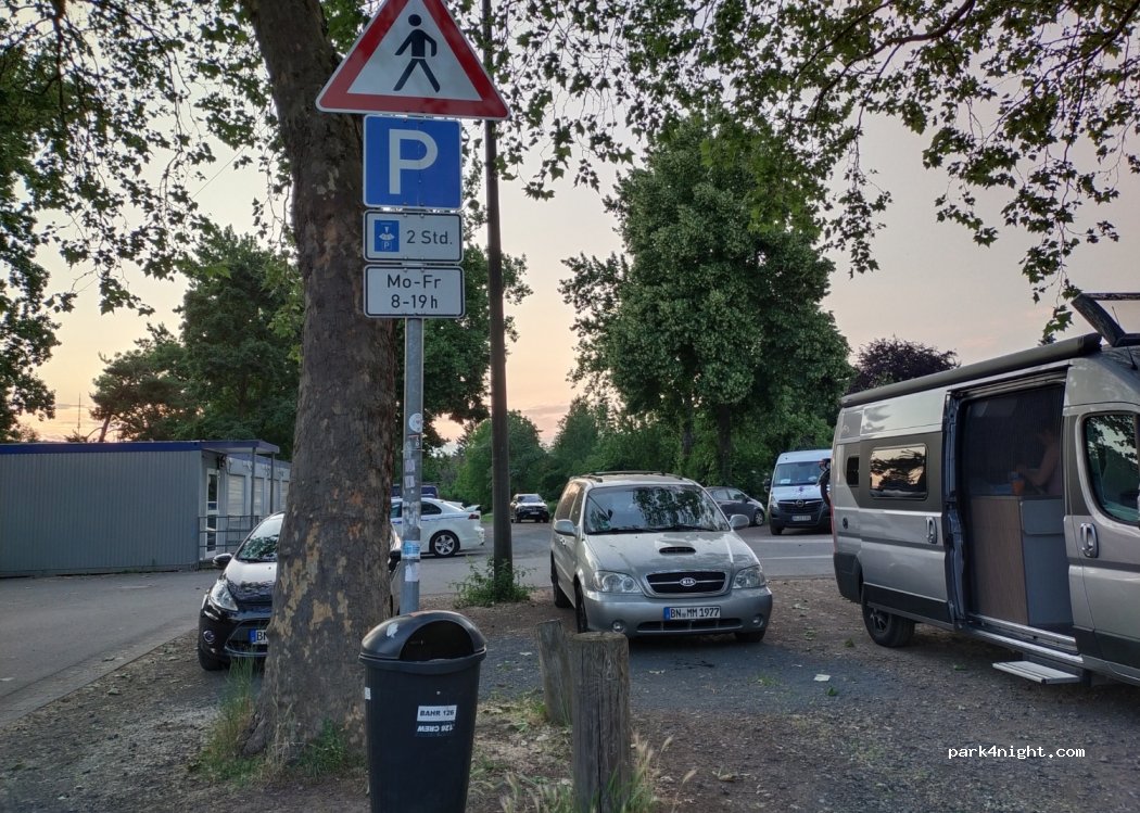 Parkeren bij buitenzwembad Friesdorf. Achterin een paar rustige plekjes. Overdag is er meer bedrijvigheid, aangezien het ook midden in het centrum/supermarkt ligt.