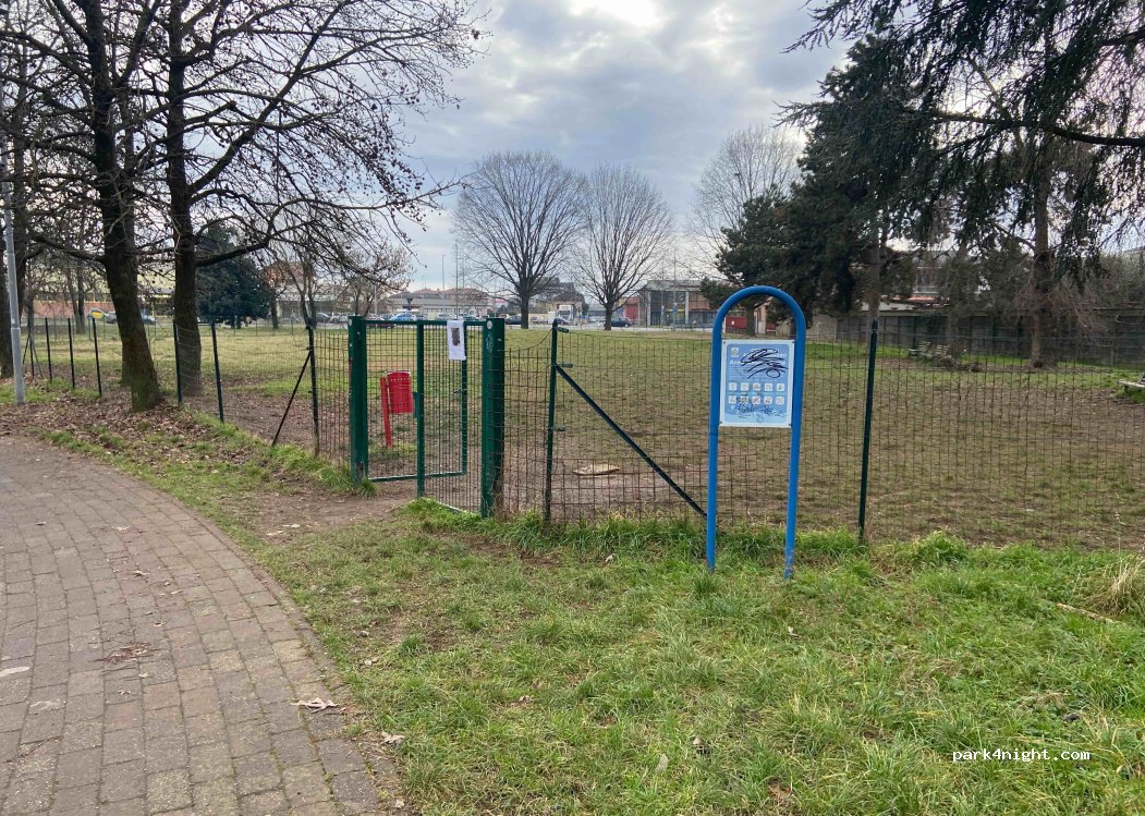 Calm tranquil area to stay. I felt safe and left the campervan for a few hours while I joined some friends for dinner in Abbiattegrasso center. Spent the night and had no disturbances. Nice big flat parking area and free. Convenience across from the grocery stores was great. Fenced in dog run area.