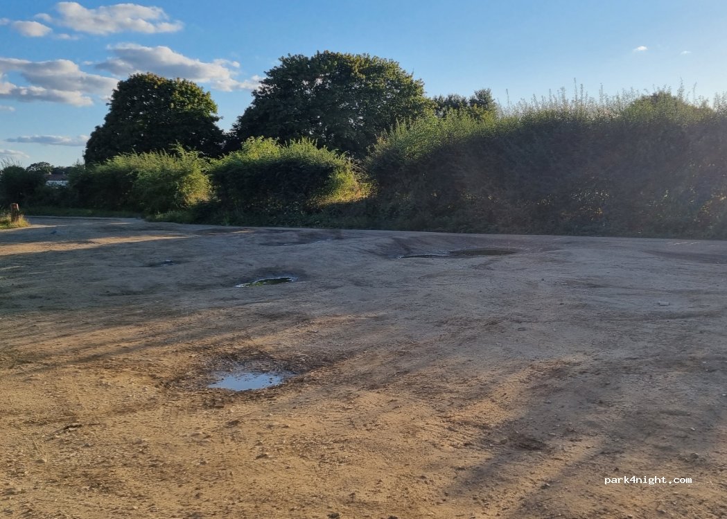 Terreno dietro parcheggio pavimentato. Il parcheggio ha un'insegna per i camion, ma nulla nell'area sterrata ha buche. Burger van in loco, deve essere ragionevole, in un sito permanente. Supermercati e lavanderia nelle vicinanze. Un sacco di posti dove portare a spasso il cane. Stazione nelle vicinanze. Per il buon cibo, prova Station Bistro, non il più economico ma ne vale la pena.