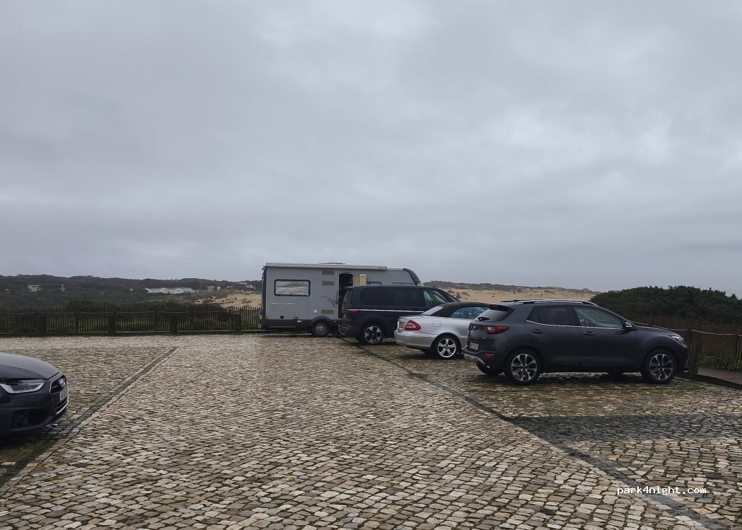 Parkeerplaats bij de duinen van Cresmina. Vlak verhard oppervlak, geen voorzieningen. Begin van een korte wandeling door de duinen (pad op houten planken met leuning) en een vergezicht op de oceaan. Overdag bezoekers, 's nachts rustig.