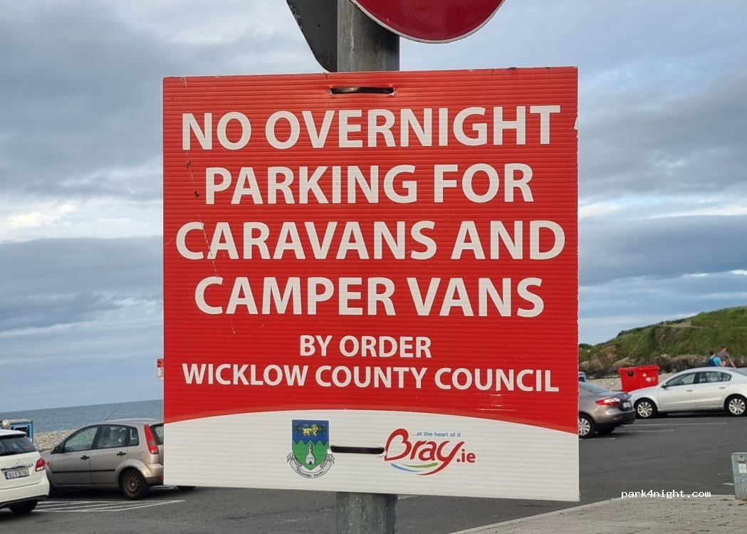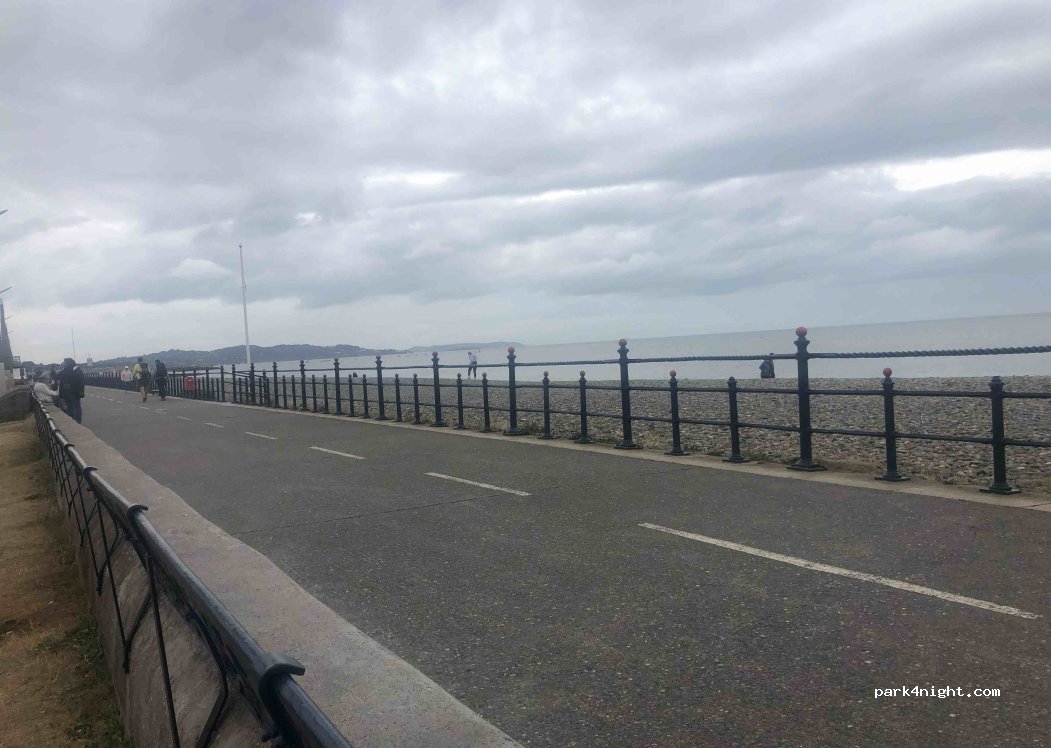Nice car parking by the sea, no height restrictions. Our LWB just fit in. Parking from 8:30am-18:30, max 10 hours parking, 50 cents per hour. Play park, outside gym and public toilets few yards away. Plenty of coffee shops and take aways around.