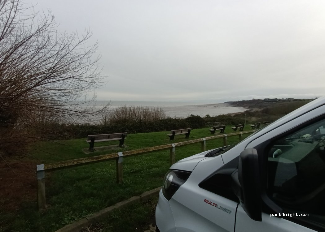 The island of Sheppey is not a fashionable place, but it has some incredible spots for park ups. This car park is ok for big campervans, or down below the cliff there's a place which can take vans 2.1m wide or less.