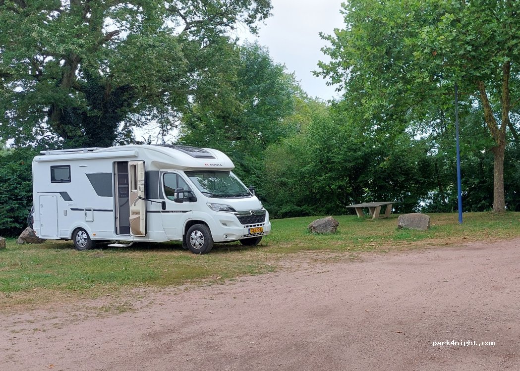 Nous y avons passé une nuit à notre retour de vacances. Aire sympa et calme. Jetons pour l'eau chez les commerçants. Le reste gratuit. Merci à la Municipalité. Juste un léger bémol, les arbres devraient être élagués de façon à laisser de la hauteur de passage.