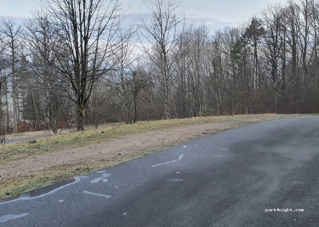 Beau stationnement en gravier au milieu de la forêt. très tranquille. En été, il sert de parking pour la piscine extérieure, il est donc très fréquenté. Est utilisé par les randonneurs toute l'année et est particulièrement recommandé pour l'automne/hiver. Restaurant à quelques mètres. Facile d'accès avec de grands mobil-homes.