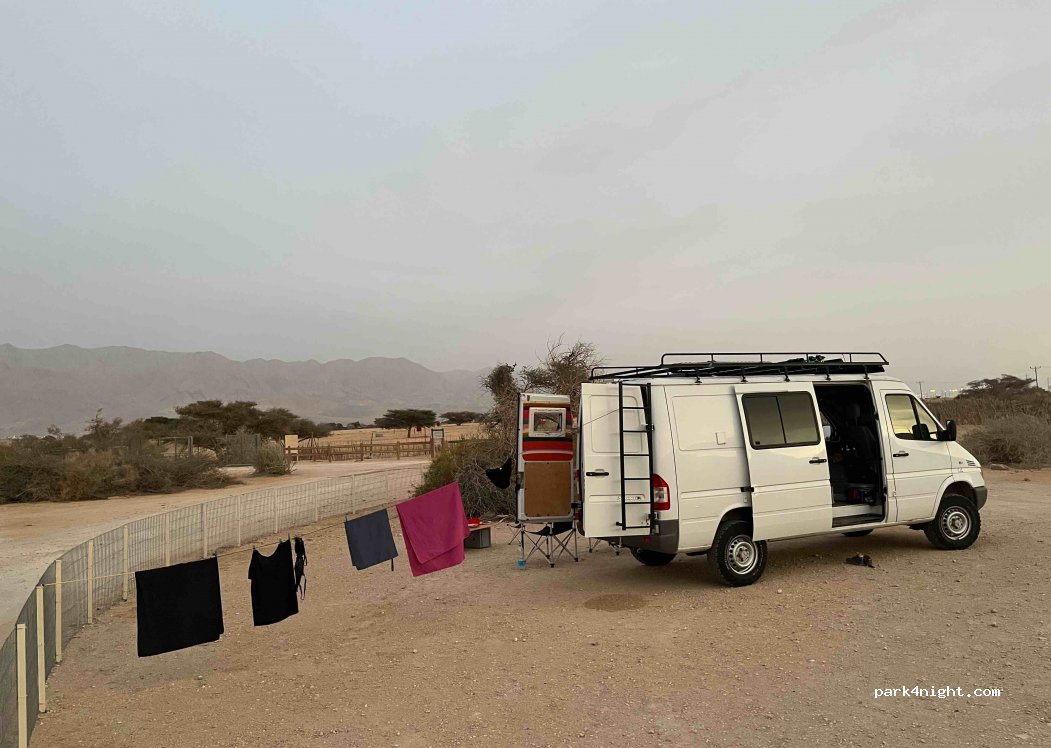 Vous pouvez loger à l'entrée du parc national (Hai-Bar Yotvata). Les voitures doivent rester sur le parking. Pour les tentes il y a une zone spécifique. Le parking est assez agréable même s'il n'y a pas d'ombre. Mais assez agréable en fin d'après-midi/soirée. Toilettes, douche, cuisine publique avec réfrigérateur et congélateur et l'entrée au parc national est en frais de camping inclus (15 eur par personne). Vous pouvez faire un safari avec votre propre voiture.