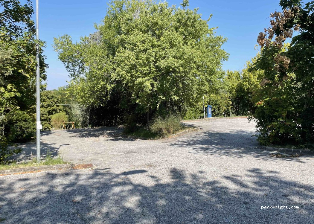 Gratuit et génial, même l’électricité est à disposition. De l’ombre du calme et le village à proximité. Merci à la municipalité d’avoir maintenant laisser l’accès ouvert sans restriction. Très beau village ; Pause intéressante avant ou après le ferry à Ancona