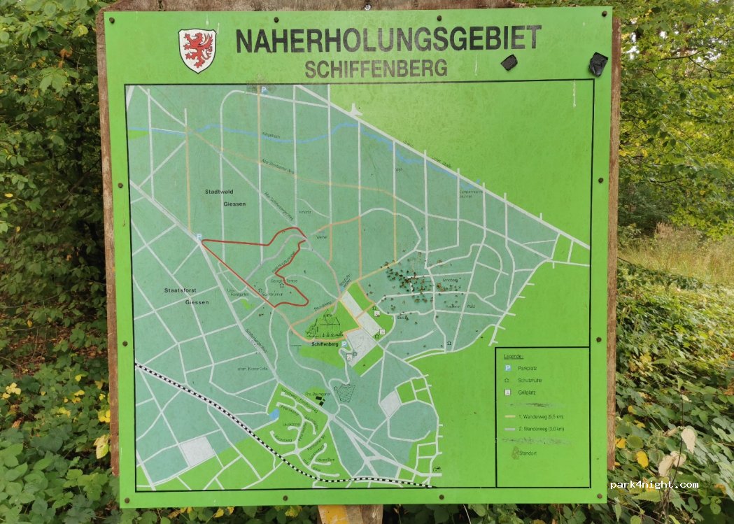Piccolo parcheggio per escursioni nella foresta cittadina di Giessen.