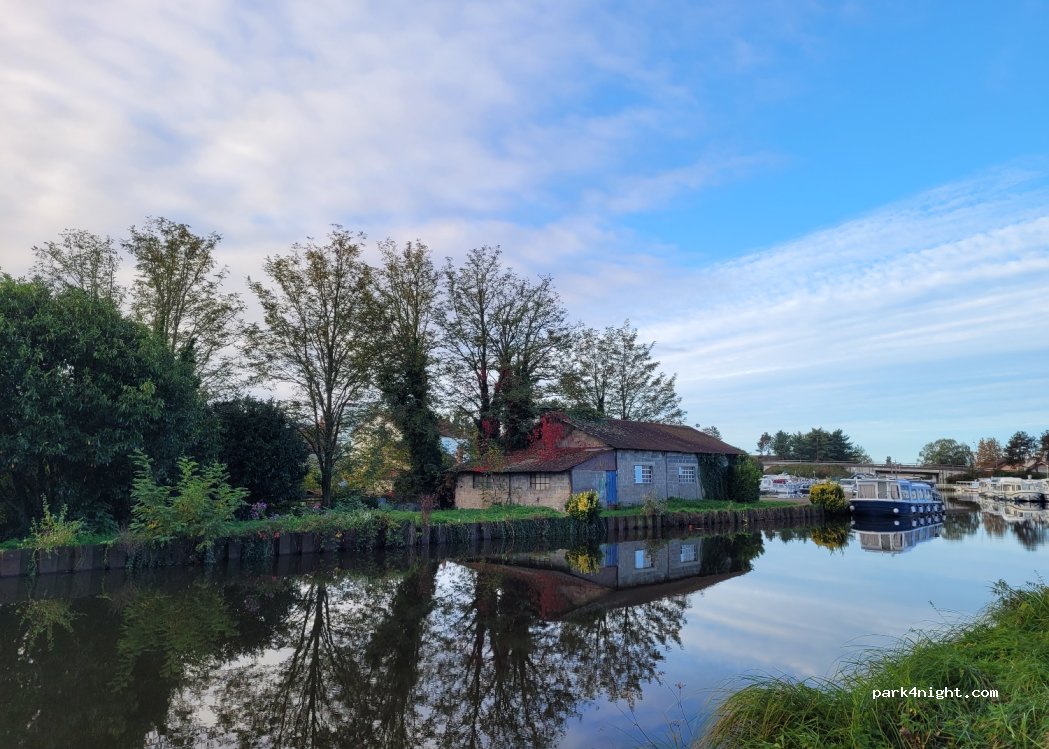 Parking at the marina, day and night parking with cars. Possibility of electricity and water via the devices for the boats (see with the rental company Canalou or La Maison des Bateaux at the end of the car park). In the city center. 10 min walk along the canal du Pont canal sur la Loire. Quiet right now in April.