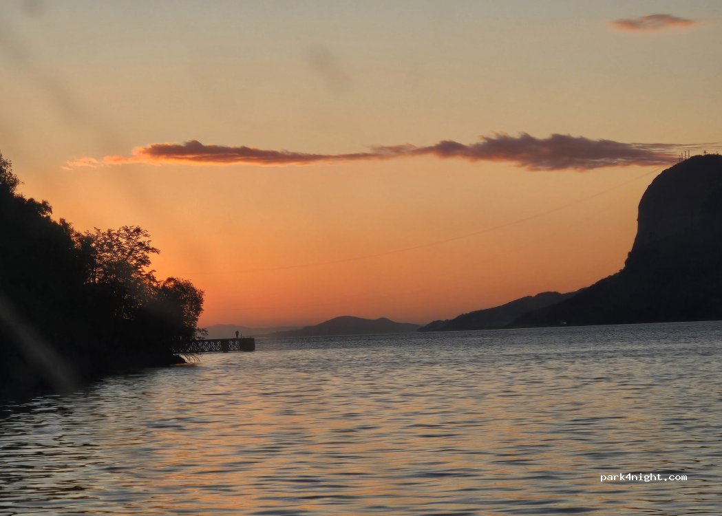 Miejsce cudowne popoludnie noc jakis tam ruch na drodze byl ale nie przeszkadzal zbyt mocno pózny piekny zachod słońca rybki mozna polowic z prysznicy nie korzystalismy oplata 150nok/24h mysle ze warto