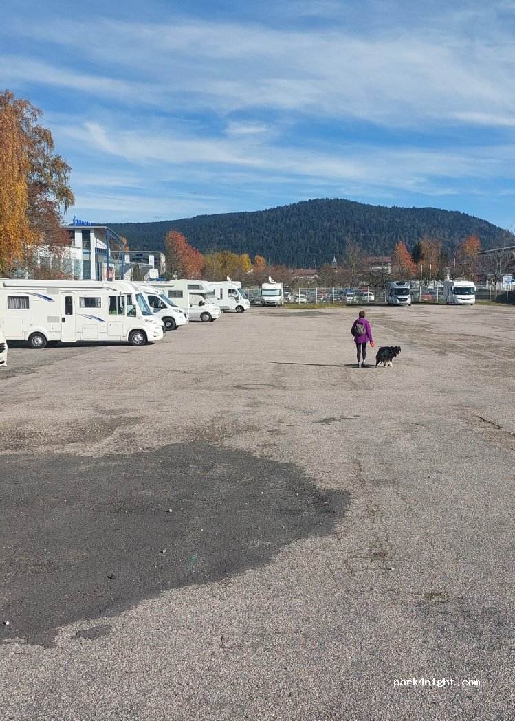 Pas très sympa comme endroit mais proche du centre-ville et du lac. Ce soir parking complet ! Nous sommes garés sur le parking de linvosges plus ou moins autorisé ! Borne de services à quelques mètres du parking. Merci quand même à la municipalité