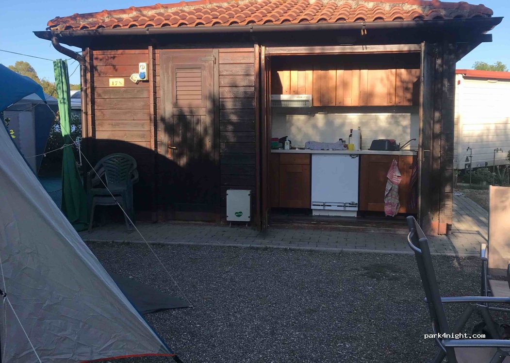 Very pleasant place for a few days rest. Motorway nearby (can be heard). About 800m to the sea (10 minutes). What we are very excited about almost every pitch has its own toilet, shower and equipped kitchen included. Restaurant is currently open on weekends.