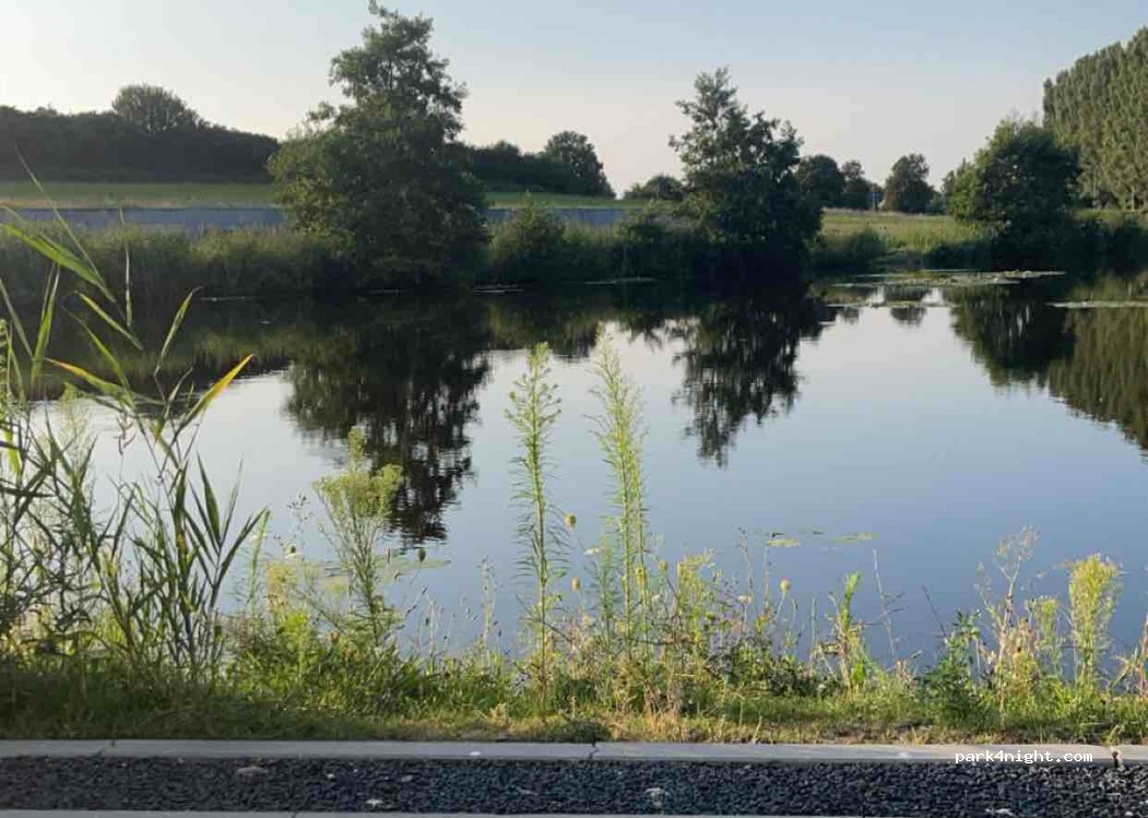Rustige parkeerplaats, ongeveer 40 plaatsen tussen een meertje en een school. Verboden Nacht