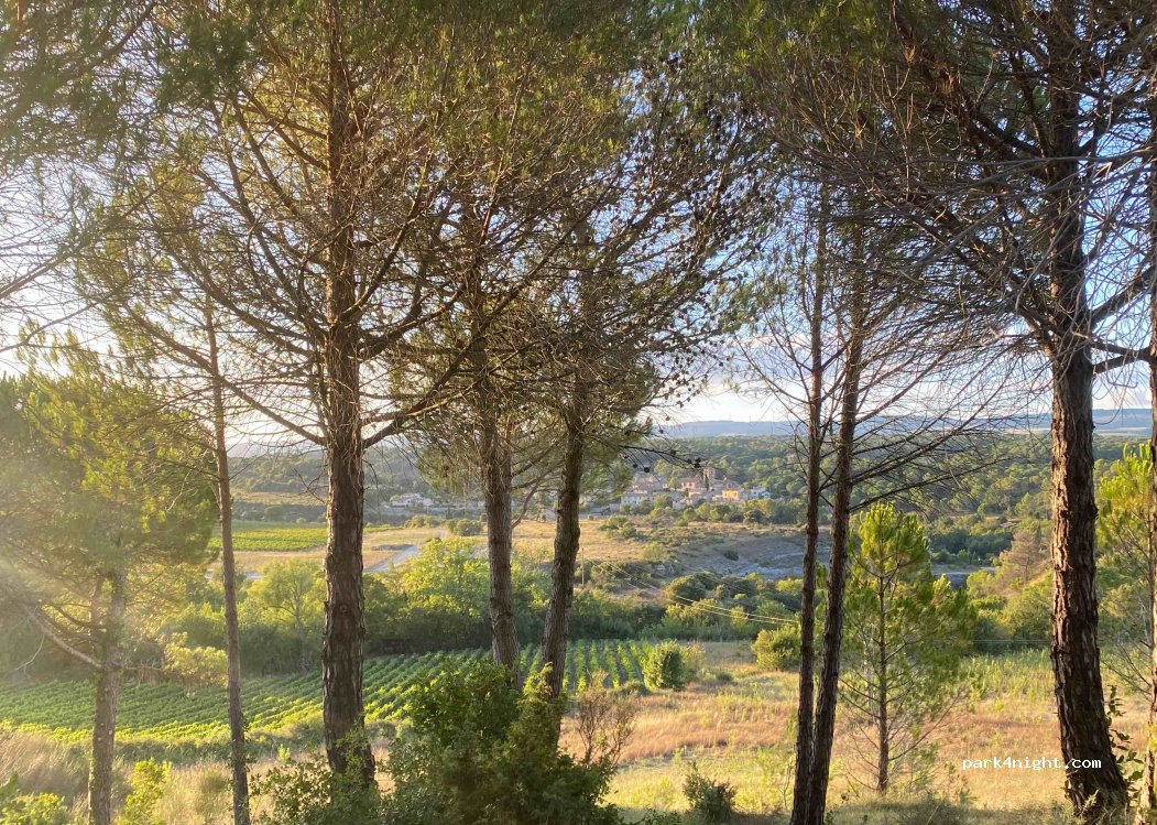 Terrain en pleine nature, dans la pinède et entre les vignes appartenant au snack-bar Collin'. Non loin d’un village pittoresque nombreux départs randonnées et VTT chemins balisés. Stationnement sans services. A côté d un snack sympa en activité le week-end et en saison.