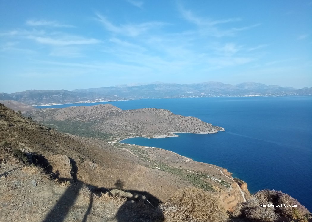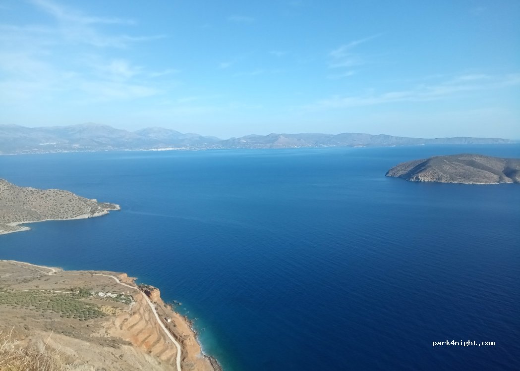 Large parking lot next to the scenic road along the mountain, easily accessible with whichever kind of camper. No infrastructure, but two restaurants right above. Gorgeous view and sunset.