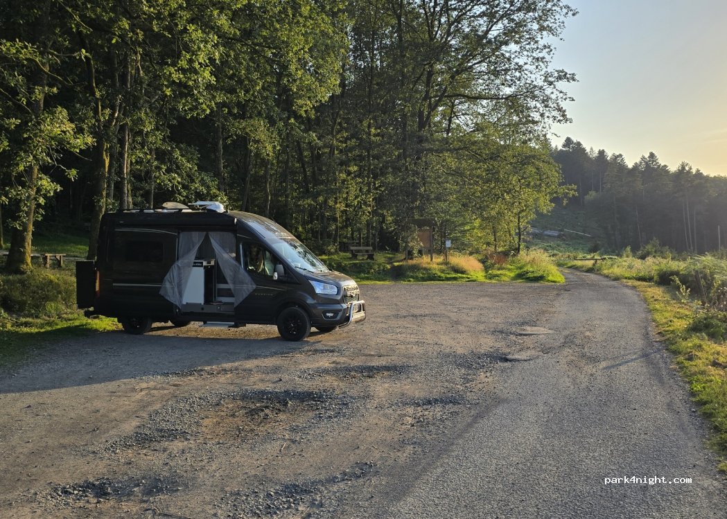 Nuit agréable très tranquille. Très proche de beaux points de vues et de départ de balades. Aire de parking avec plusieurs tables de pic-nic avec bancs en lisière du bois.