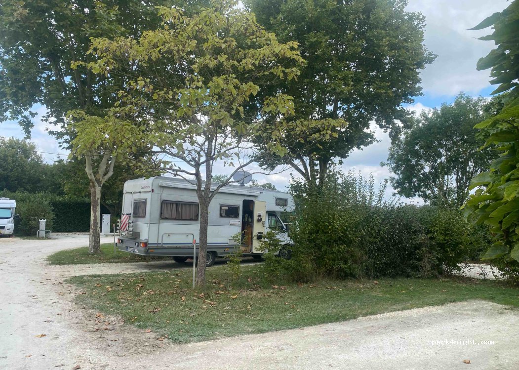 Grands emplacements, moitié en dur, moitié en herbe, ombragés et séparés par des haies. WC et douches disponibles sauf en hiver. Nécessite l’achat (sur place) de la carte Camping car Park si on ne l’a pas encore (5€) - valable à vie. Aire quasiment pleine en ce début de saison.