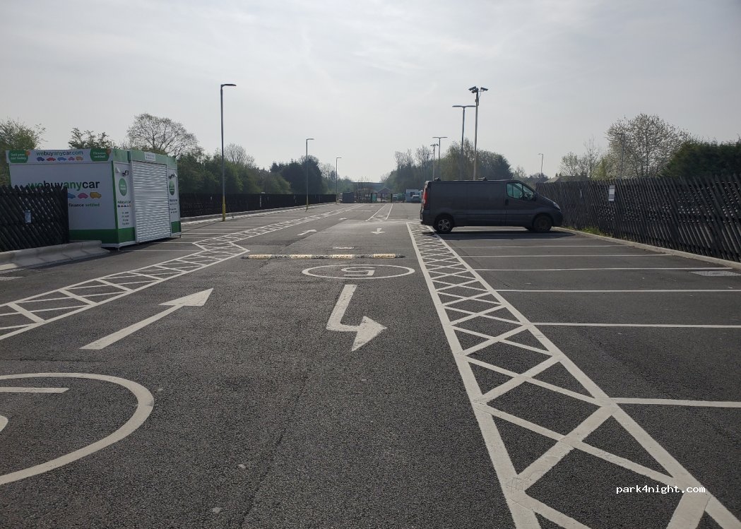 Large free car park at Garforth Station. No restrictions, well lit, plenty of security cameras. 12 mins train journey into Leeds. Within station car park is a disused vets, I parked on their car park, again no signs or restrictions. Metro trains very quiet and don't run through the night. There is a cafe and taxi rank at the station, pubs and shops a short walk away. Felt very safe and a peaceful night. You need good blinds/curtains or a sleep mask as the area is very well lit. Perfect for travelling into Leeds and feeling your vehicle is safe.