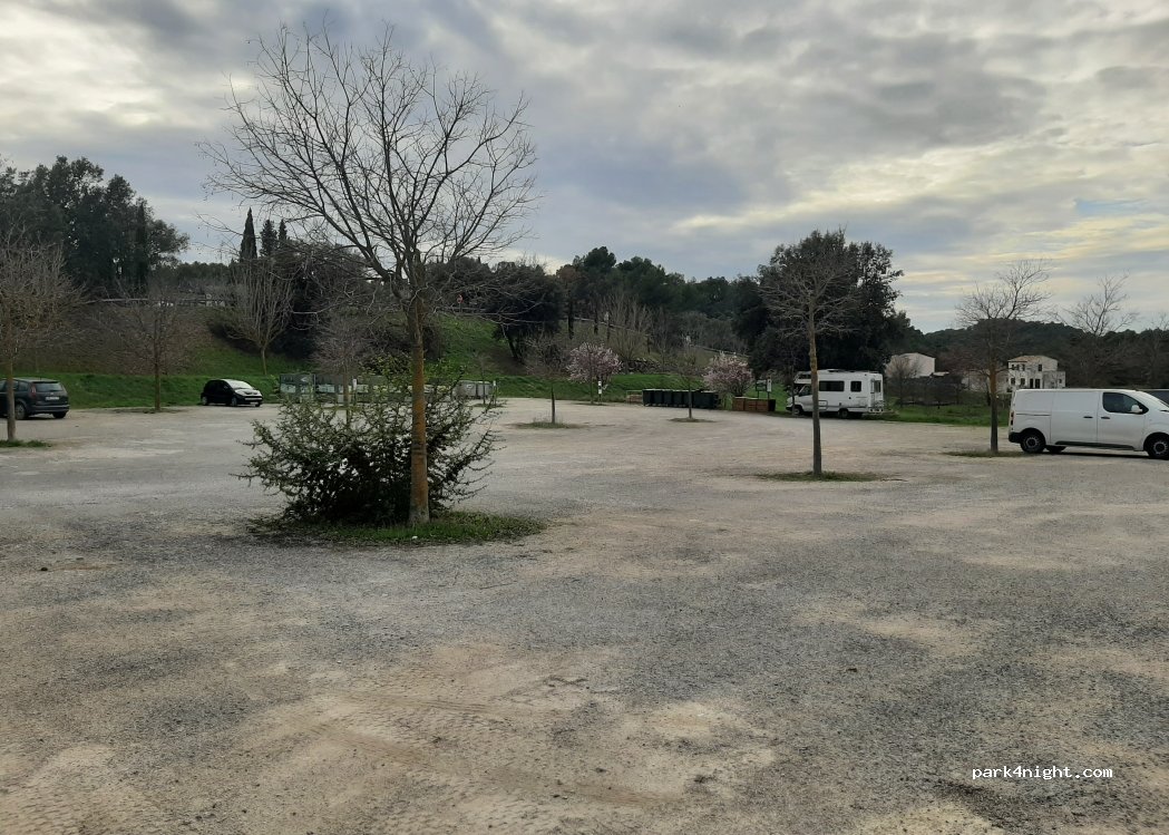 Car park "le castelet" Center of the village. We spent the night there on the advice of a local. Slept very well, very quiet and the road above did not bother us at all. In the village Press, Grocery, Pizzeria. For a stopover, nothing to say.