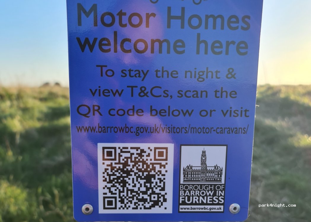 Lovely peaceful carpark 100 yards back from beach, thank you furness council for making motorhomes welcome, bins, so leave nowt behind, just one night but thay hav 4 other free motorhome parking in & round barrow, defo come back