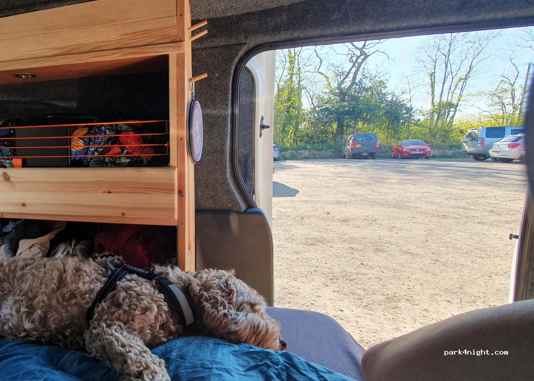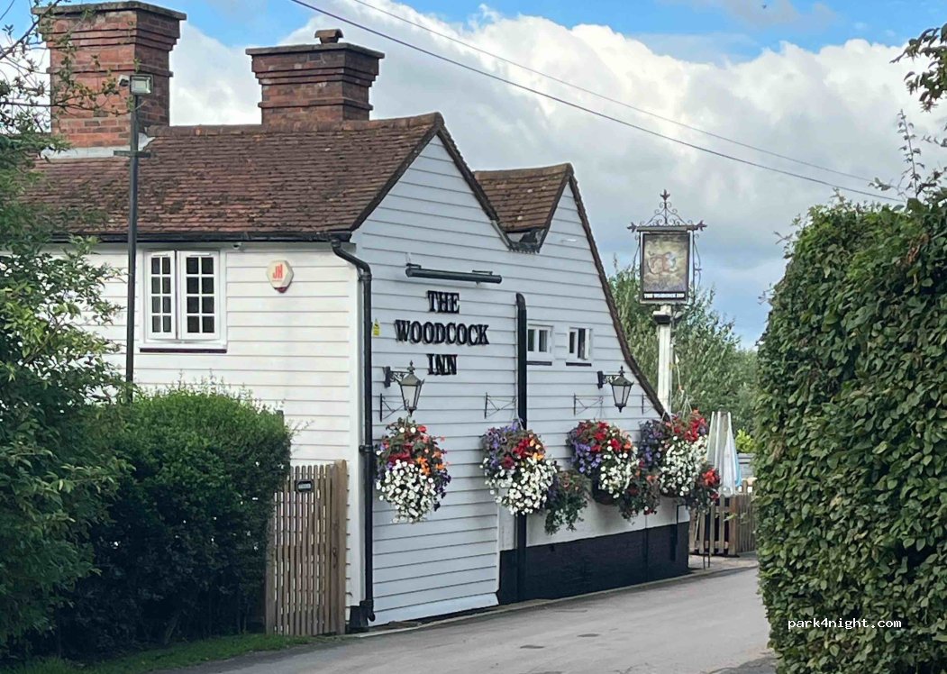 Wood Cock pub car park, lovely car park surrounded by woods. bollards put up at night so no vehicles turning in car park. Great pub with food, and the best bit is they open at 9am for breakfast. All you need to do is use the pub and they are happy for you to stay. Very dog friendly too, we had a great night.