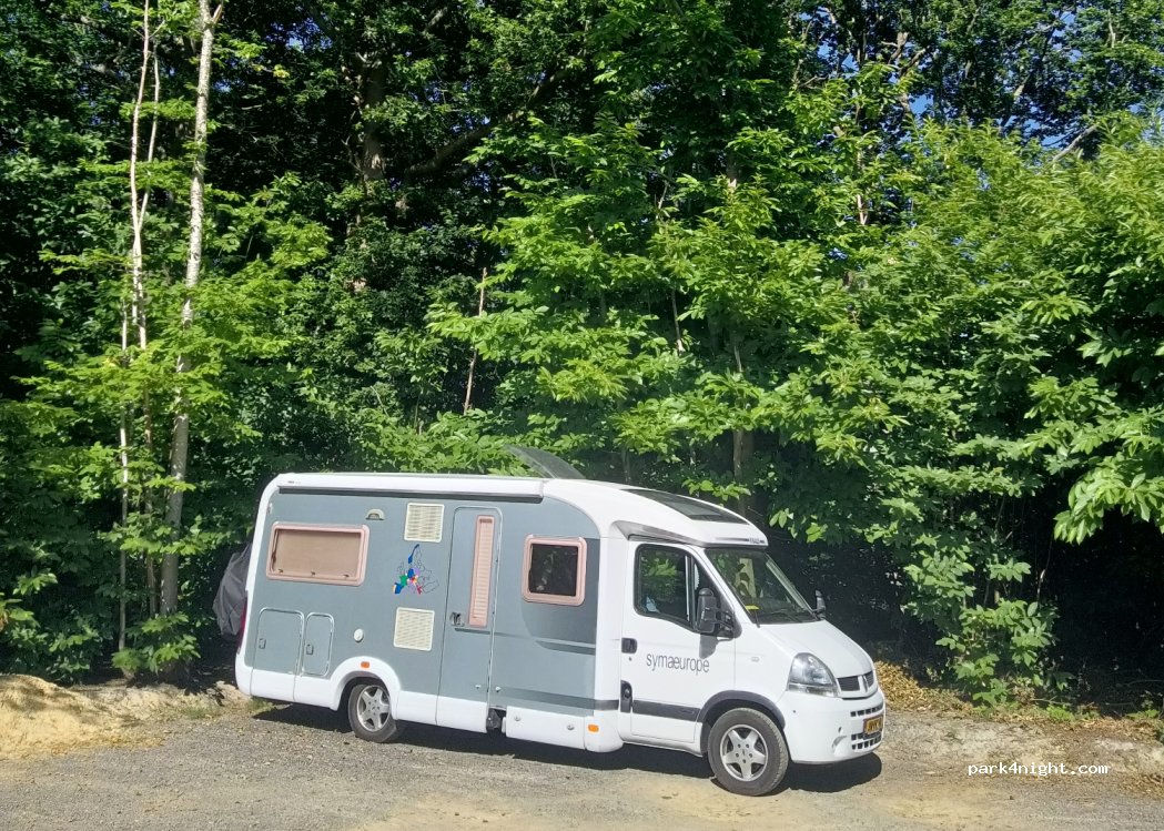 Parking du pub Wood Cock, joli parking entouré de bois. bornes installées la nuit pour qu'aucun véhicule ne tourne dans le parking. Super pub avec de la nourriture, et le meilleur, c'est qu'ils ouvrent à 9h pour le petit déjeuner. Tout ce que vous avez à faire est d'utiliser le pub et ils sont heureux que vous restiez. Très chien amical aussi, nous avons passé une excellente nuit.