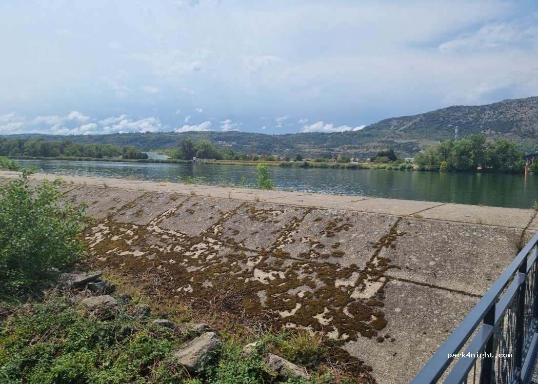 très joli parc qui suit le long du Rhône pour le parking il y a toilettes et poubelles un peu de passage mais lieu pratique j'ai même pu caler le van contre les arbres pour prendre une douche à l'arrière du van
