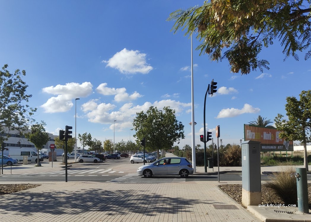 Parking avec beaucoup de place. Vendredi soir rassemblement amical de groupe de personnes qui discutent. Légèrement bruyant mais bien dormi. On s'est senti en sécurité. N'oubliez de visiter le la palmeraie et surtout le jardin du curé "Hurda del cura". Classe patrimoine mondial de l'humanité.