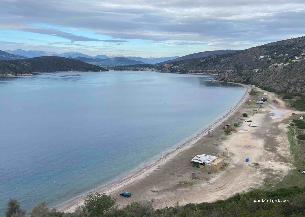 Unmissverständlich hat es ein Schild an der Abzweigung von der Hauptstrasse. Aufgrund eines Grossanlasses in Nafplio war die Polizei beschäftigt. Sofort wurde ausgenutzt und man übernachtete da. Es wird nicht geduldet und die Polizei weisst einem weg. Bei mehrmaligen Ermahnungen kann der Ärger gross werden - also bleibt weg.