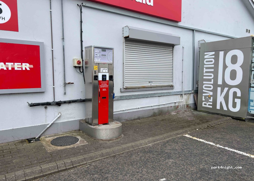 24/7 self-service washing machine at a service station next to the Cromore Halt Hotel.