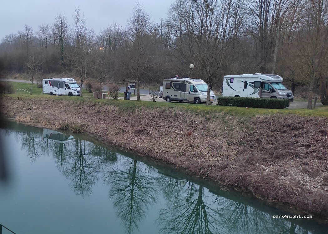 petit parking en bord de canal avec eau vidange et même électricité !!! un grand merci à la municipalité par contre un peu bruyant car en bord de route