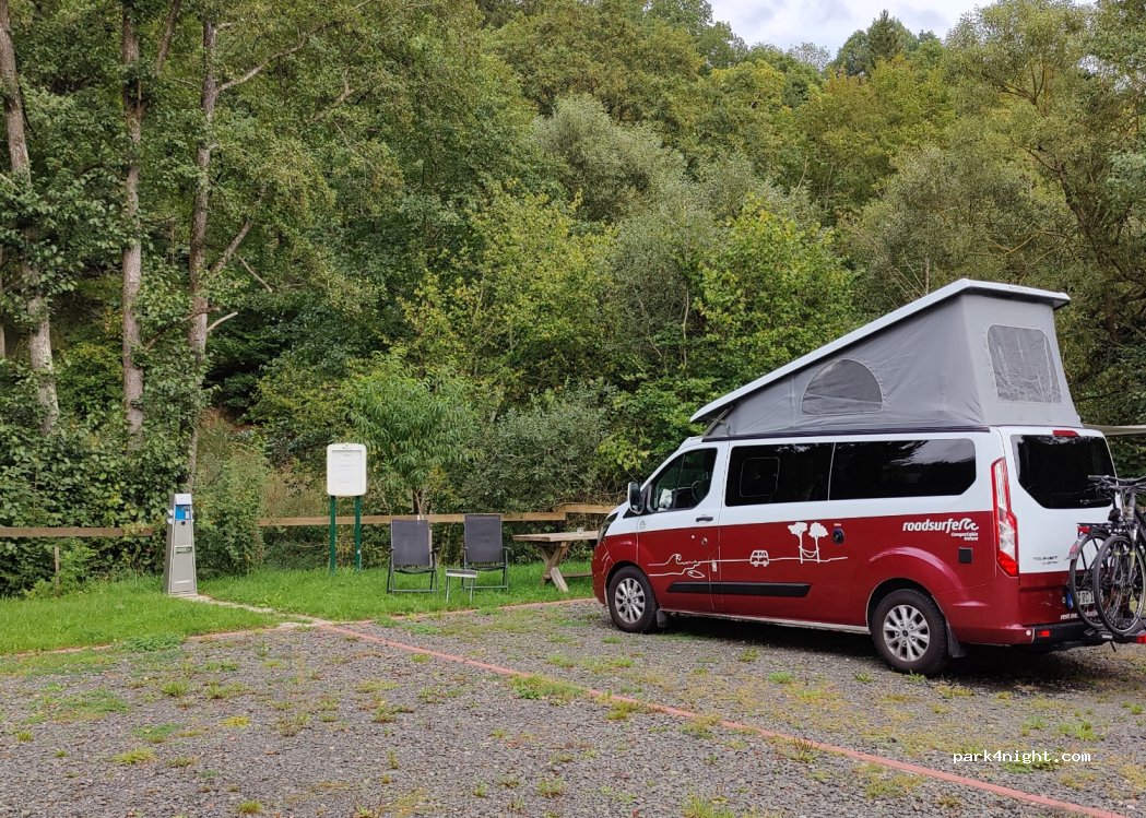 Sehr schön, einfache Anfahrt zu 4 ebenen und befestigten Stellplätzen mit Strom (bei Bedarf). Entsorgung von Grauwasser und Chemietoilette vorhanden, Trinkwasser auch. Alles einfach erreichbar und in der Natur. Gastgeber sehr freundlich, in der Waldtalsmühle gibt’s Forellen und kalte Getränke, auch WiFi. Der Stellplatz kostet 10,00 Euro pro Nacht, Strom 0,50 €/kWh. Wir werden wiederkommen.