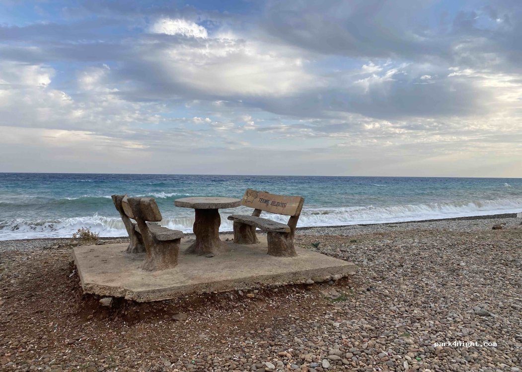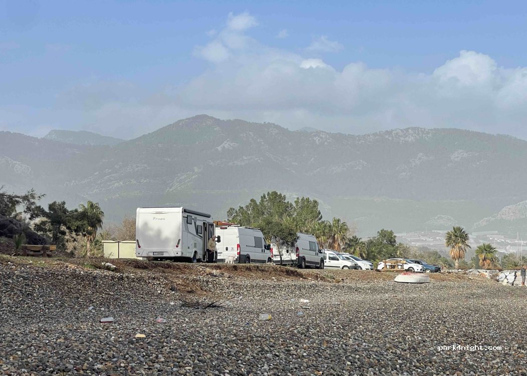 Nice pebble beach. Like in every place like this in Turkey, many people come by car from the early afternoon until the late evening to go fishing or have a picnic or party. The Jandarma came in the evening and said nothing, again in the morning to check passports. There are dirty Turkish toilets and basic showers. There is some space but not a lot. The other beach to the south is very nice.