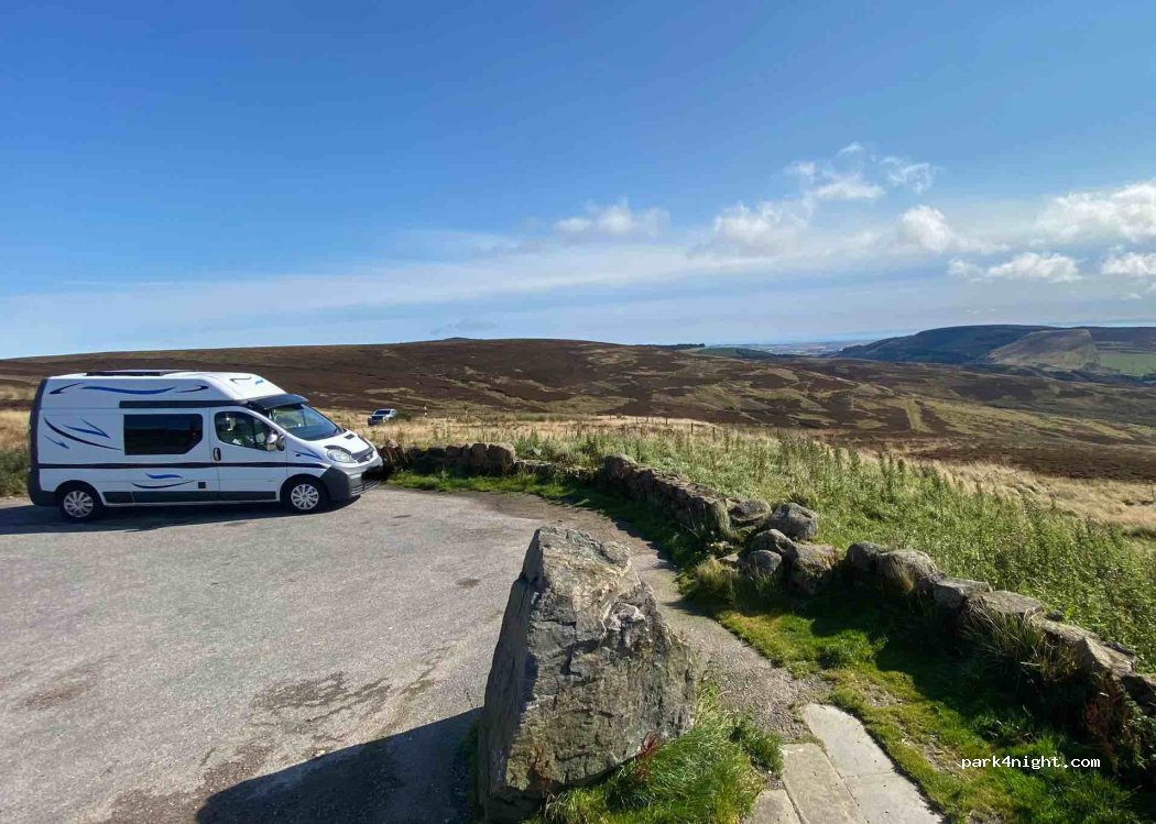 Absolutely stunning views but (of course) very windy on the top, as winds are coming from all sides. Challenge to find a level spot and road busier than one might expect, but quiet enough for a good nights sleep! Stayed one night with two vans and a couple of other people showed up up for short-term parking up during the evenings, otherwise very remote. Bin available.