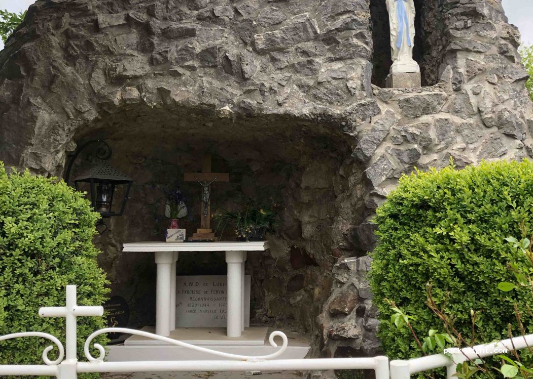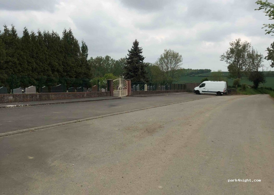 Parking du cimetière, pas droit. Antenne téléphone pas loin on capte très bien, balade dans les champs
