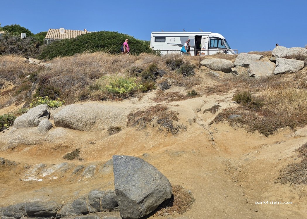 Prima dag/nacht plek. Geen schaduw, geen voorzieningen. Wij brachten hier twee nachten door. Geluid. Zee..regen…camping entertainment kids(was 21.00 stil) en de locale die ook af en toe parkeerden om te zwemmen/wandelen. Prima uitvalsplaats voor strandje (voor de camperdeur) fietsen of wandelen.