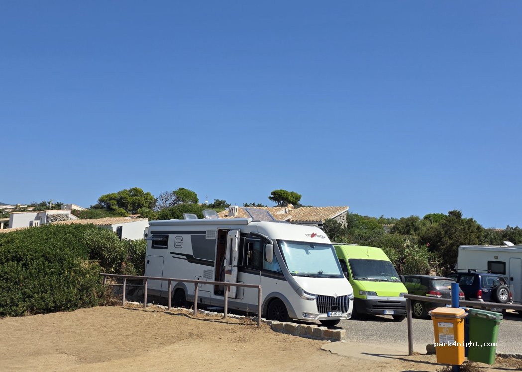 Sehr toller Parkplatz völlig umsonst direkt neben einem schönen Strand und zwischen zwei Campingplätzen. Wenn man sich ganz vorne hinstellt sogar mit direkten Meer und Strand Blick sogar besser als auf dem Campingplatz. Polizei war auch da aber wenn man nichts draußen stehen lässt ist alles gut. Es gibt auch trennmülleimer Vorort