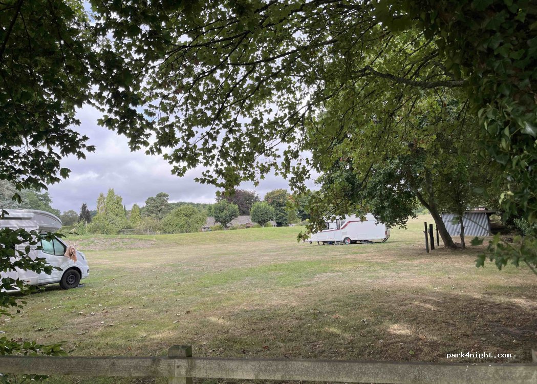 Site affilié au Lovely Caravan and Motorhome Club. Adhésion requise, 5 unités autorisées, 20 £ la nuit en mai 2022, y compris le branchement électrique. Eau à chaque emplacement. Vidange WC chimique. Pas de toilettes ni de douches. Bon Wi-Fi. Bon accueil du propriétaire.