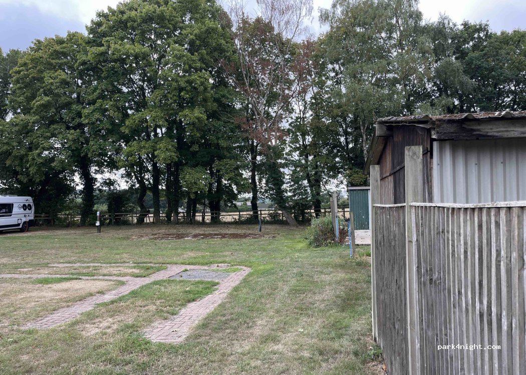 Sitio afiliado al Lovely Caravan and Motorhome Club. Se requiere membresía, se permiten 5 unidades, £ 20 por noche en mayo de 2022, incluida la conexión eléctrica. Agua en cada parcela. Desagüe de inodoro químico. No hay baños ni duchas. Buen wifi Buena acogida por parte del propietario.