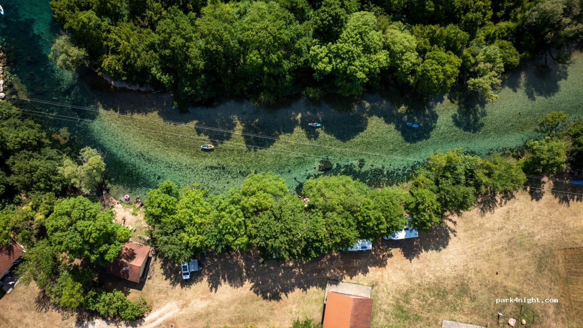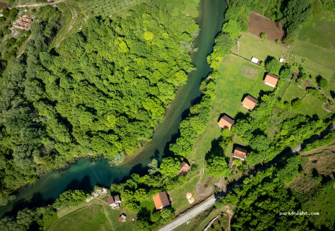 Easy access, good roads; between Niksic and Danilovgrad. Beautiful view of the Ostrog monastery above. Possibility of staying in all types of vehicles. Parking spaces directly by the river under the trees.