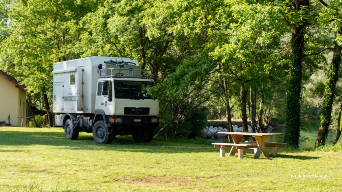 Nous devions y passer qu'une nuit , finalement nous sommes resté deux nuits . Un camping car, à 4 avec électricité et l eau pour 15 euros la nuit . Au top ! Le propriétaire est très agréable et très serviable, la rivière est magnifique.