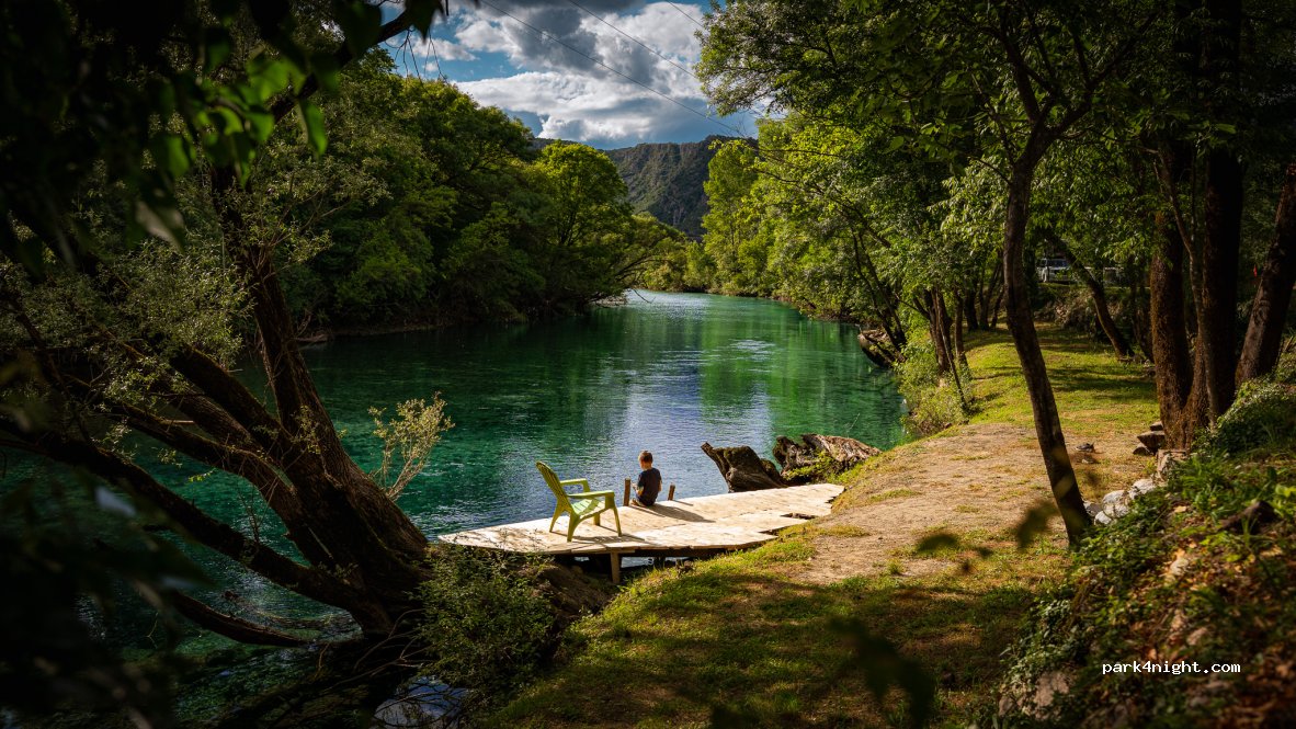 Een rustige camping in de natuur direct aan de oever van de rivier de Zeta, vlakbij de bron, een meer dan verfrissend koude rivier, ideaal om af te koelen op een warme zomerdag.