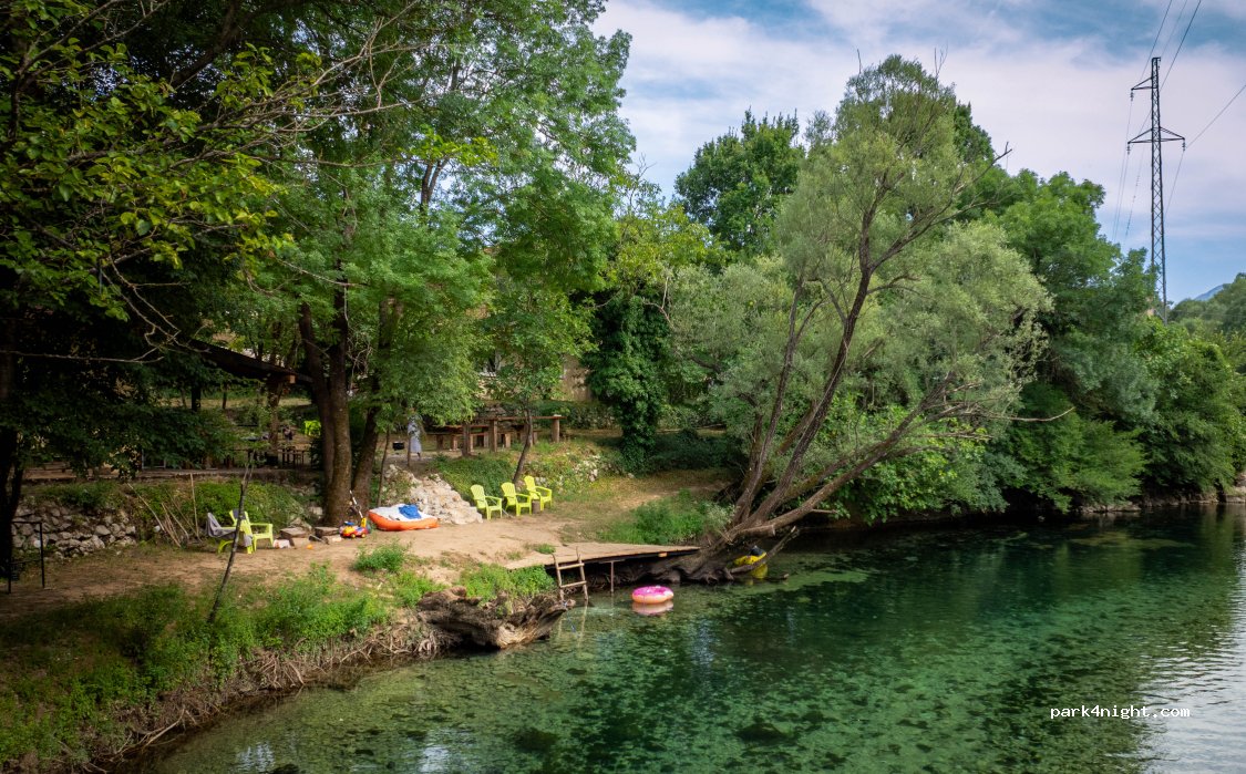 Un campeggio tranquillo immerso nella natura, direttamente sulla riva del fiume Zeta, vicino alla sorgente, un fiume più che rinfrescante, ideale per rinfrescarsi nelle calde giornate estive.
