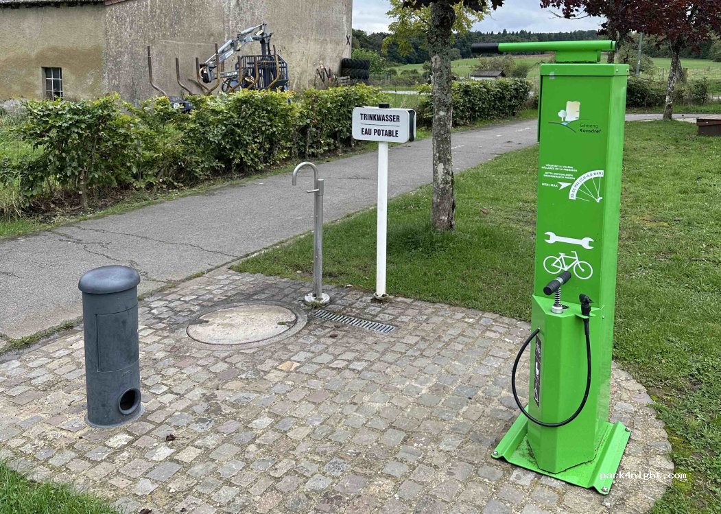 garée sur le parking du bord de route face à la fontaine. Remplissage avec jerrican, très pratique et rapide. merci du tuyau.