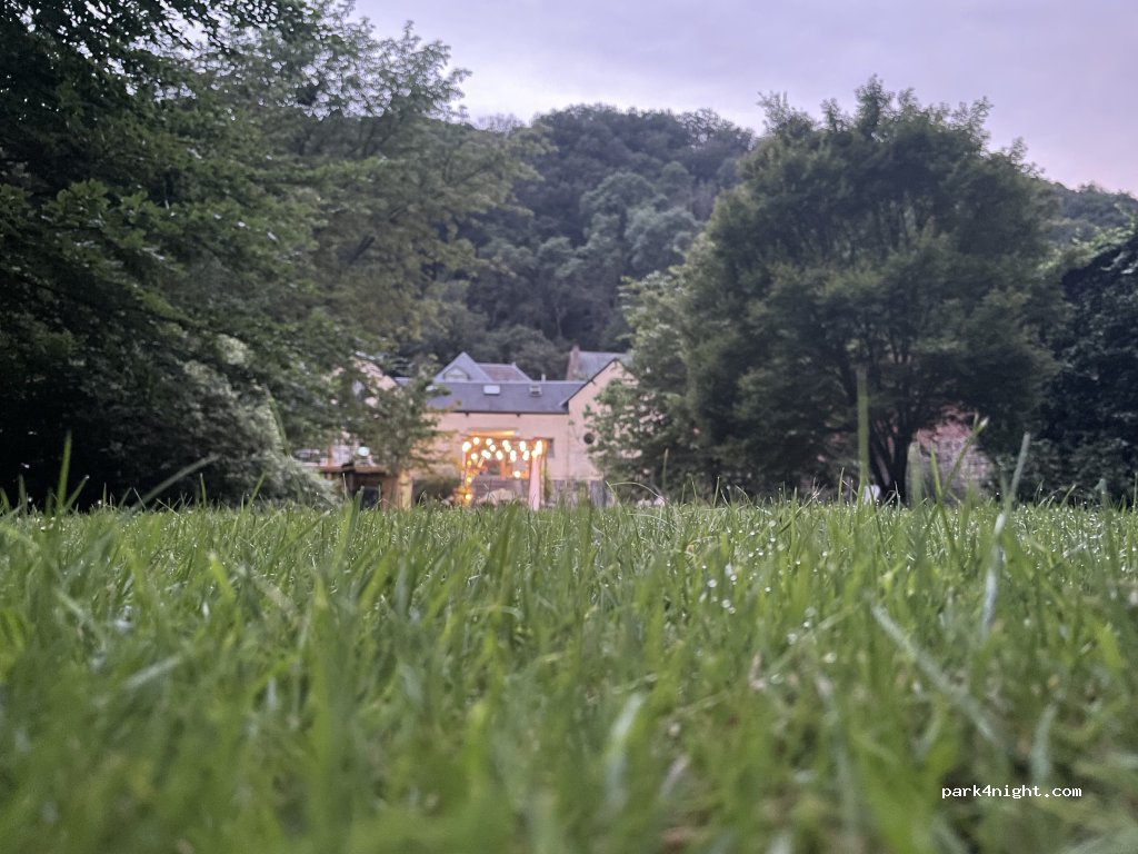 Endroit très tranquille car se situant dans une cour privée. La propriétaire est super accueillante. La possibilité de déjeuner sous forme de brunch est très copieux. Un accès aux toilettes de la maison principale est possible, excepté la nuit. Sinon il y a un immense jardin magnifiquement aménagé qu'on peut utiliser à notre guise. Finalement possibilité de branchement en eau et électricité.