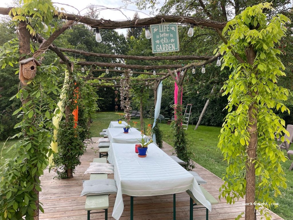 Wir bieten Platz für 1 bis 2 Wohnmobile auf unserem Parkplatz, je nach Auslastung des Ferienhauses und der Gemeinschaftsräume.