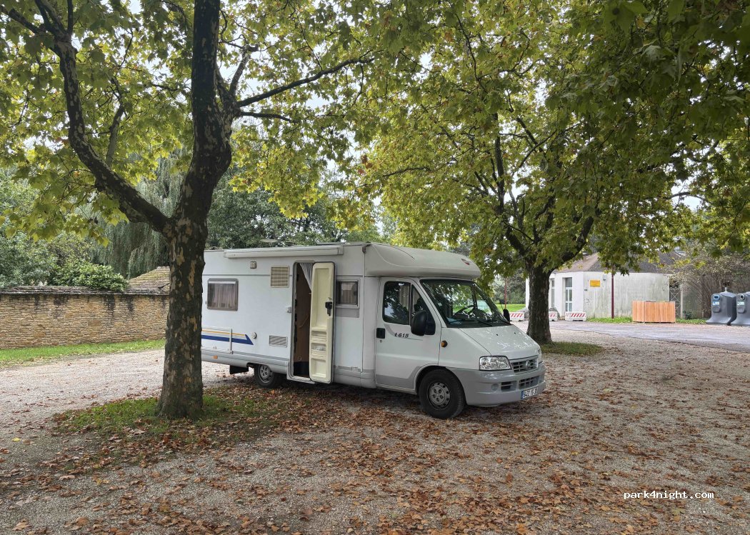 Endroit très calme au bord d’un petit lac de pêche. Il s’agit du parking du périscolaire. Il y a des jeux et des tables pour pique-niquer. Nous avons passé une nuit très calme un samedi soir.