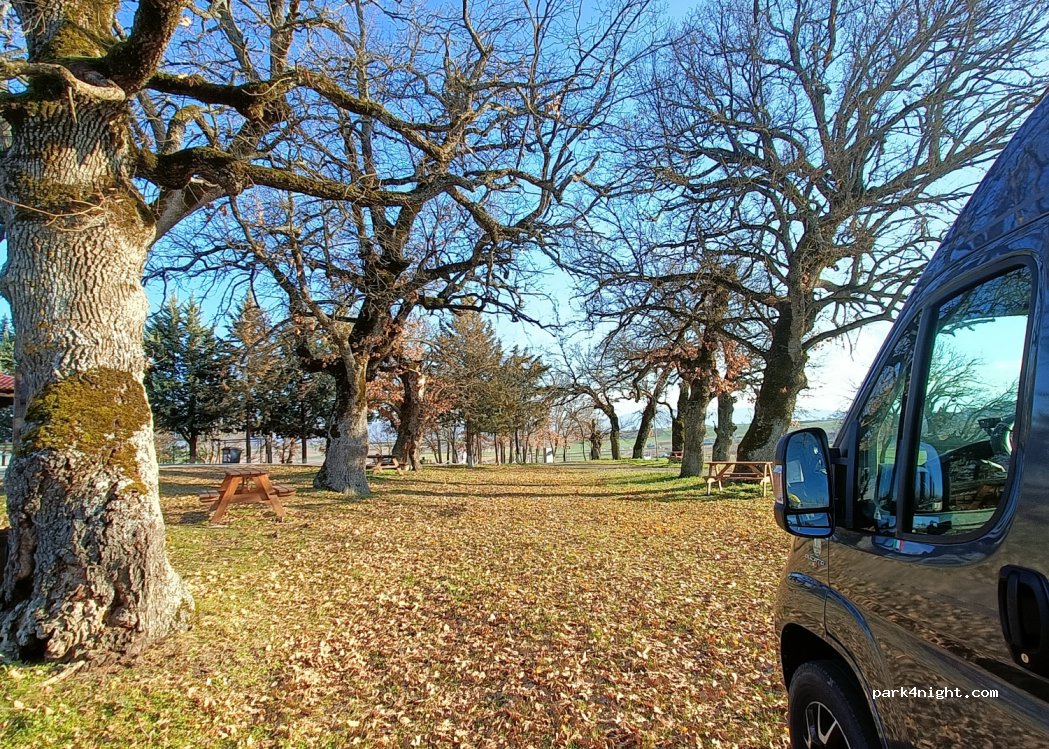 Incroyable parc à 500m du village de Karpero, très calme la nuit et avec une vue imprenable ! Aire de jeux pour enfants, 2 robinets (l'eau est potable), des toilettes publiques, de nombreux arbres ombragés et un coin barbecue ! Il existe également un sentier de randonnée menant à la rivière/au lac Aliakmonas. Le village dispose d'un supermarché, d'une boulangerie, de tavernes traditionnelles proposant de la cuisine grecque, de cafés, d'une station-service, d'un coiffeur, etc. Les habitants sont incroyablement sympathiques ! L'endroit est un paradis pour les amoureux de la nature. Nous avons vraiment apprécié ! (La boîte aux dons volontaires se trouve à côté des toilettes).